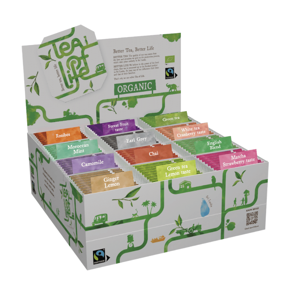 Tea of Life beantwoordt aan de groeiende vraag naar duurzame producten. Een uitgebalanceerd fairtrade en biologisch assortiment van smaken in elegant vormgegeven doosjes. Bijzondere eigenschappen van het assortiment zijn de pure en eerlijke kwaliteiten direct van de plantages in Sri Lanka, die na de pluk meteen vers verpakt worden. De verschillende soorten thee zijn herleidbaar naar de bron.